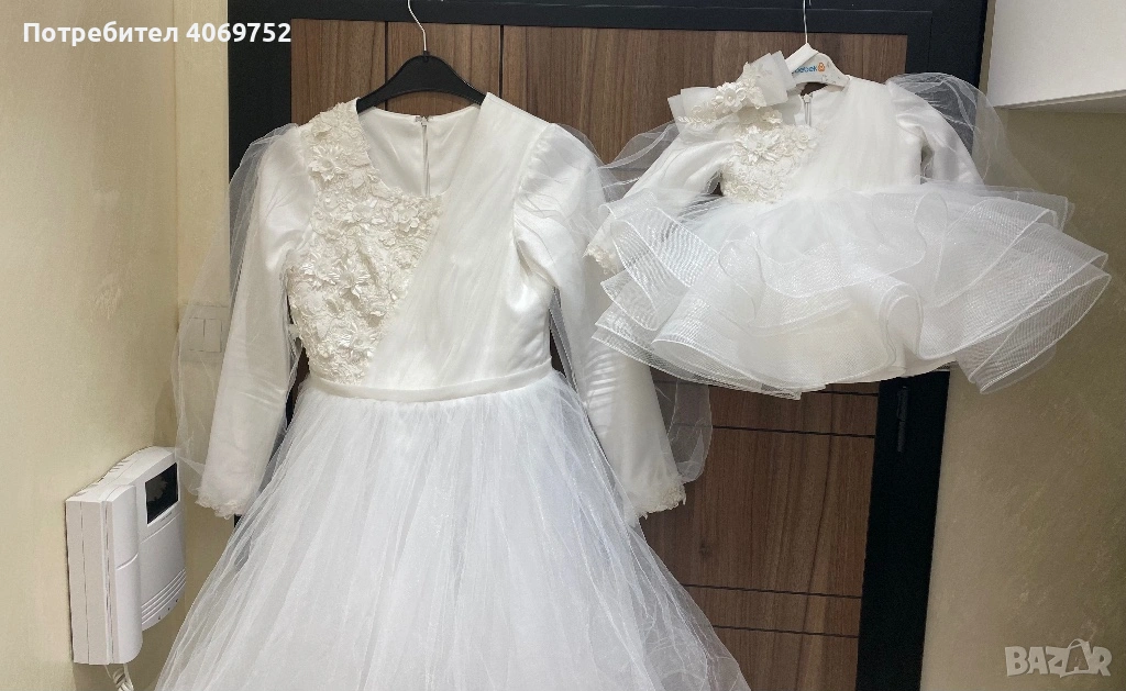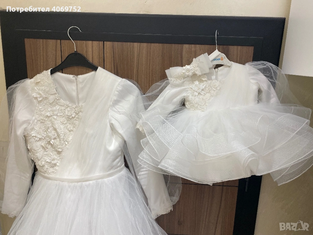Рокли за мама и дъщеря в бяло шити по поръчка носени за 2 ч без забележки!