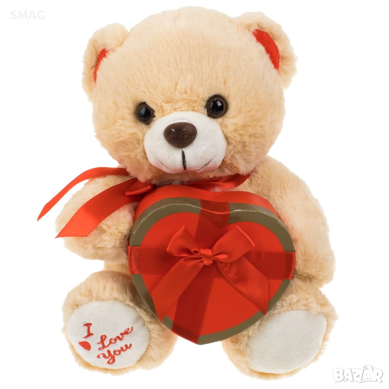 Меко плюшено мече в бежов цвят, държащо подаръчна кутия във формата на сърце – перфектен подарък за Свети Валентин. Бродираното послание върху лапичката добавя лично и романтично докосване. Идеално за изразяване на обич и внимание към любим човек. Комплектът е готов за подаряване и не изисква допълнителна опаковка.