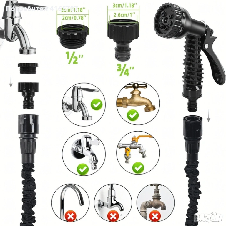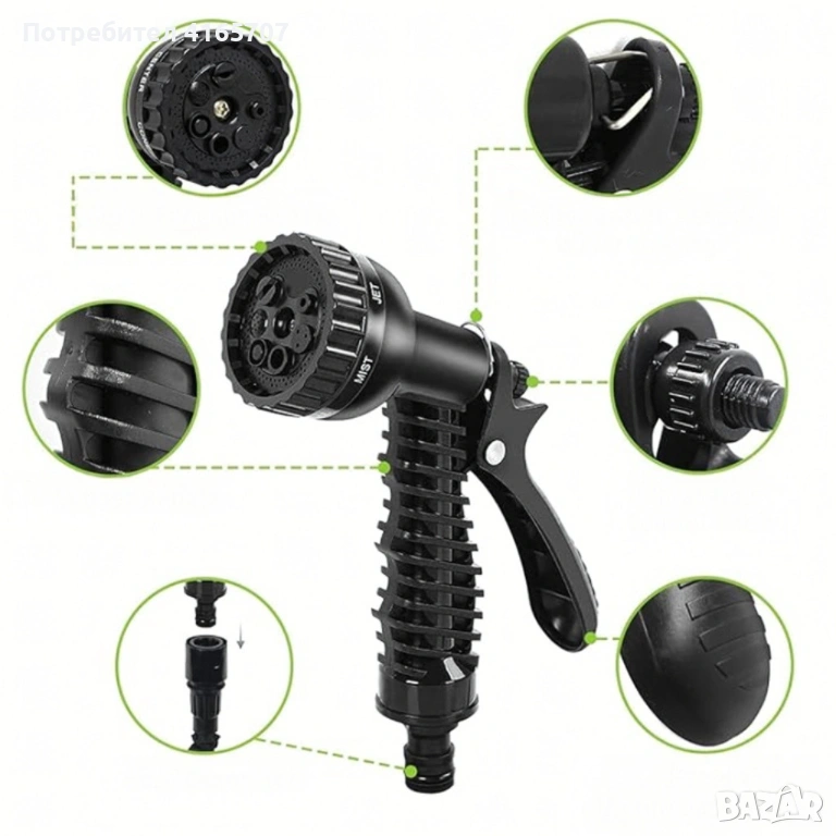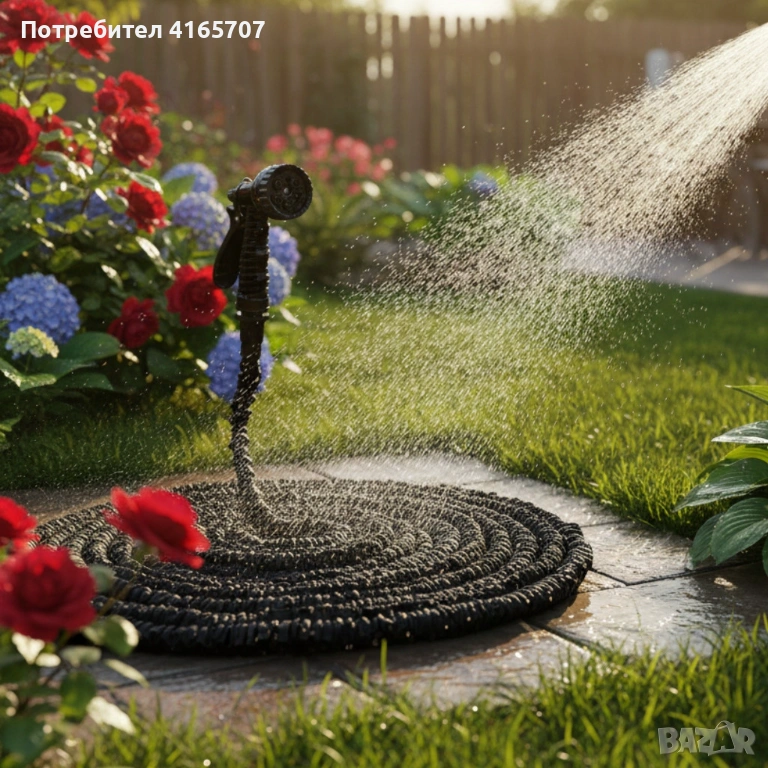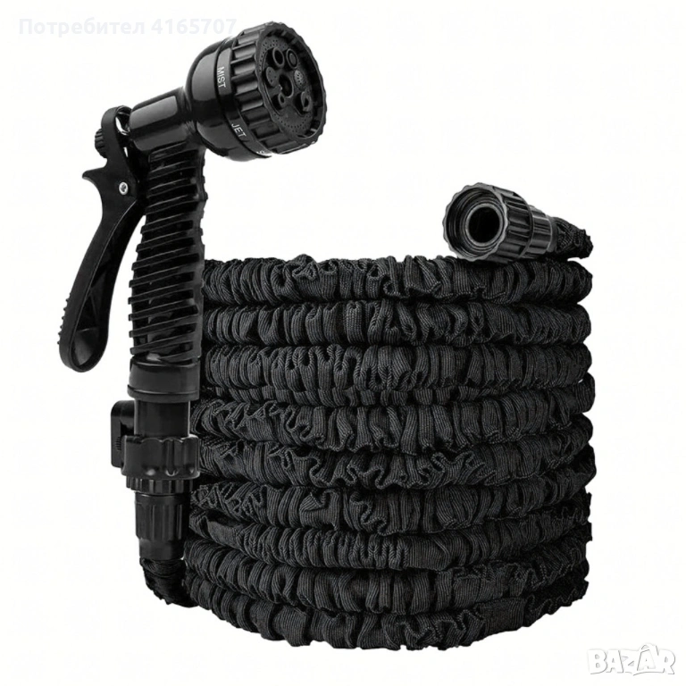 Гъвкав разтеглив градински маркуч 30м – Пълен комплект с пистолет (7 функции) и конектори → Обява 53369587