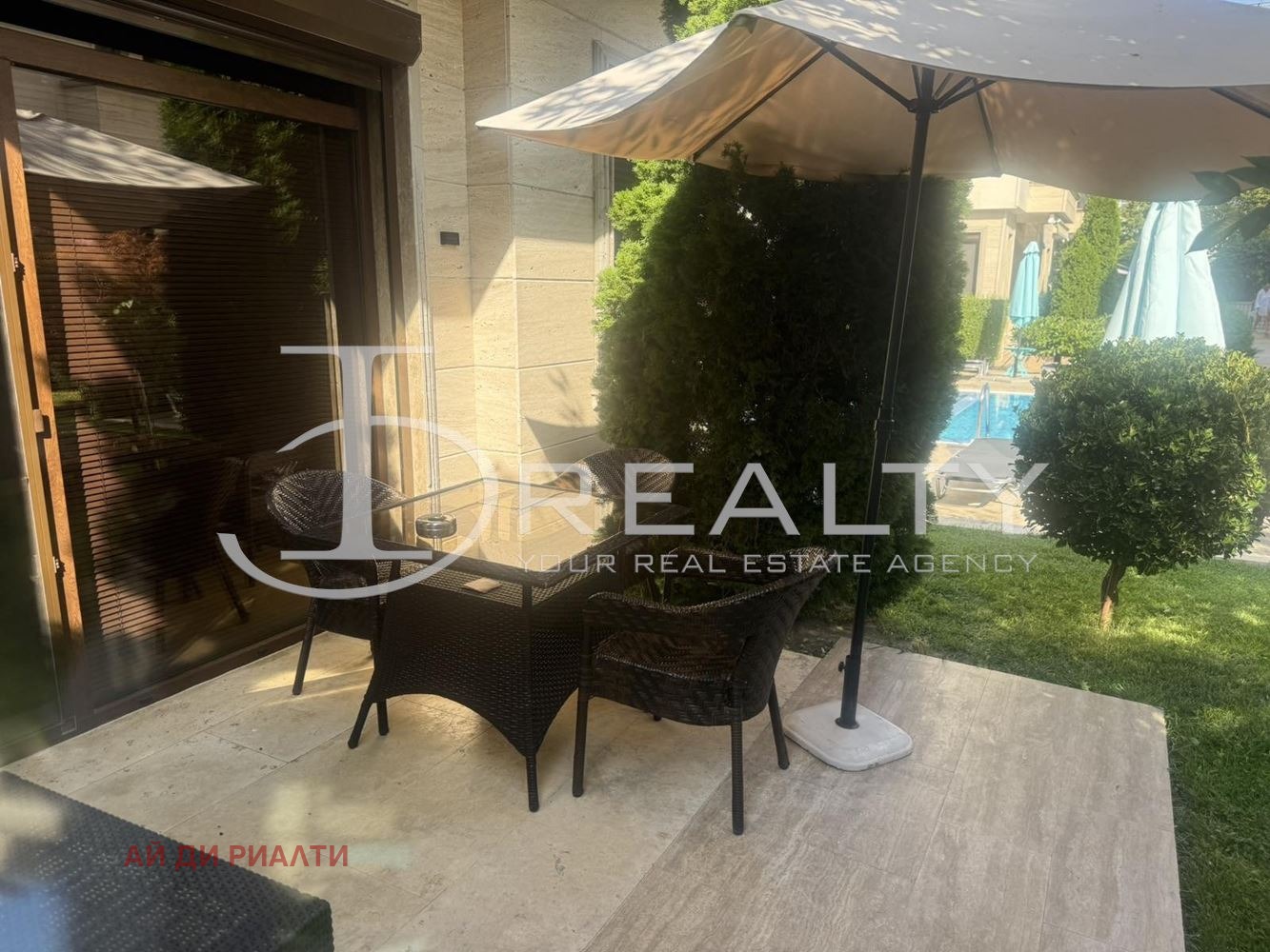 ID Realty има удоволствието да Ви представи едностаен апартамент в к.к. Слънчев бряг. Жилището състои от всекидневна с кухненски кът и спалня баня с тоалетна и прекрасна веранда. Имота се издава обзаведен с наличните мебели и оборудване. Разположен в затворен комплекс с басейн, контролиран достъп, зелени площи, АКТ 16 и асансьор. Таксата поддръжка е 8 на кв.м. на година.