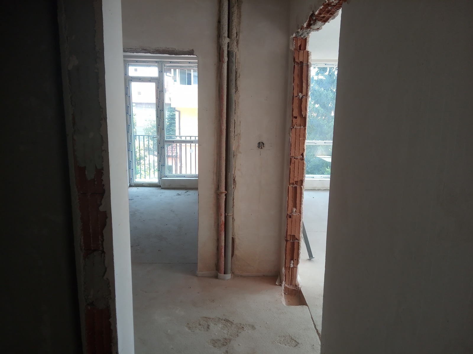 Имотът има чиста площ 92 кв.м и е със следното разпределение: дневна с кухненски бокс 29 кв.м, спалня 14 кв.м , спалня 11 кв.м, входно антре, баня с тоалетна, тоалетна, дрешник, тераса. Изложение запад-север. Предава се на шпакловка и замазка, а отоплението е предвидено да бъде на електричество.