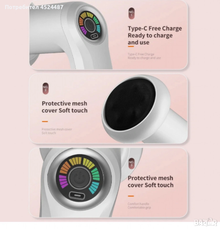 Тип: Вибрационен шиацу масажор;
