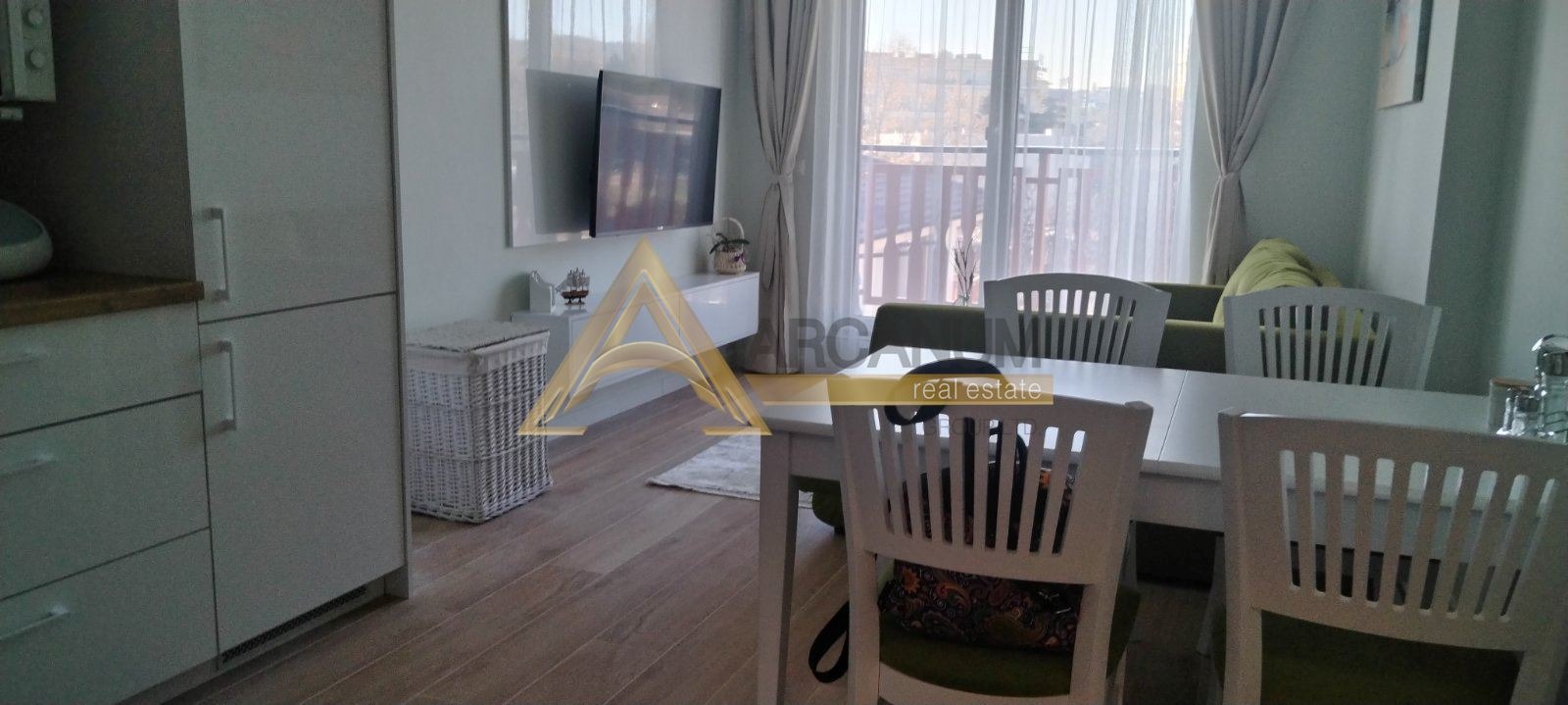 Жилището се намира в нова жилищна сграда с отлично поддържани общи части, разположена в тих и спокоен комплекс с озеленяване и детски площадки идеална среда за комфортно и спокойно живеене.