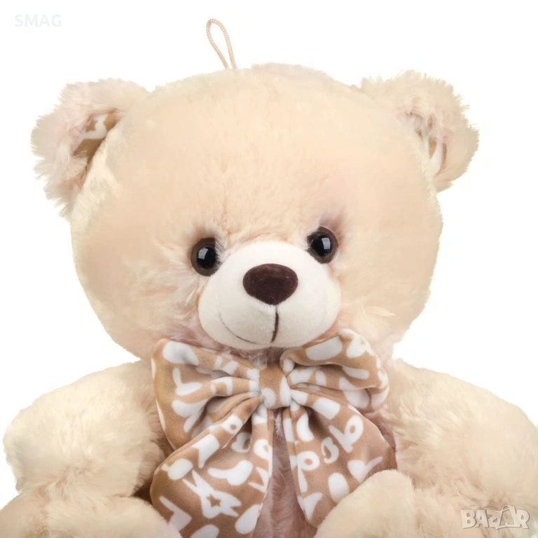 Меко бежово плюшено мече с папийонка и бродирани лапички – чудесен подарък за Свети Валентин или за специален човек. Седнало и компактно, може да се използва като декорация или за прегръдки. Симпатично и нежно, носи радост и усмивки на любимия човек.