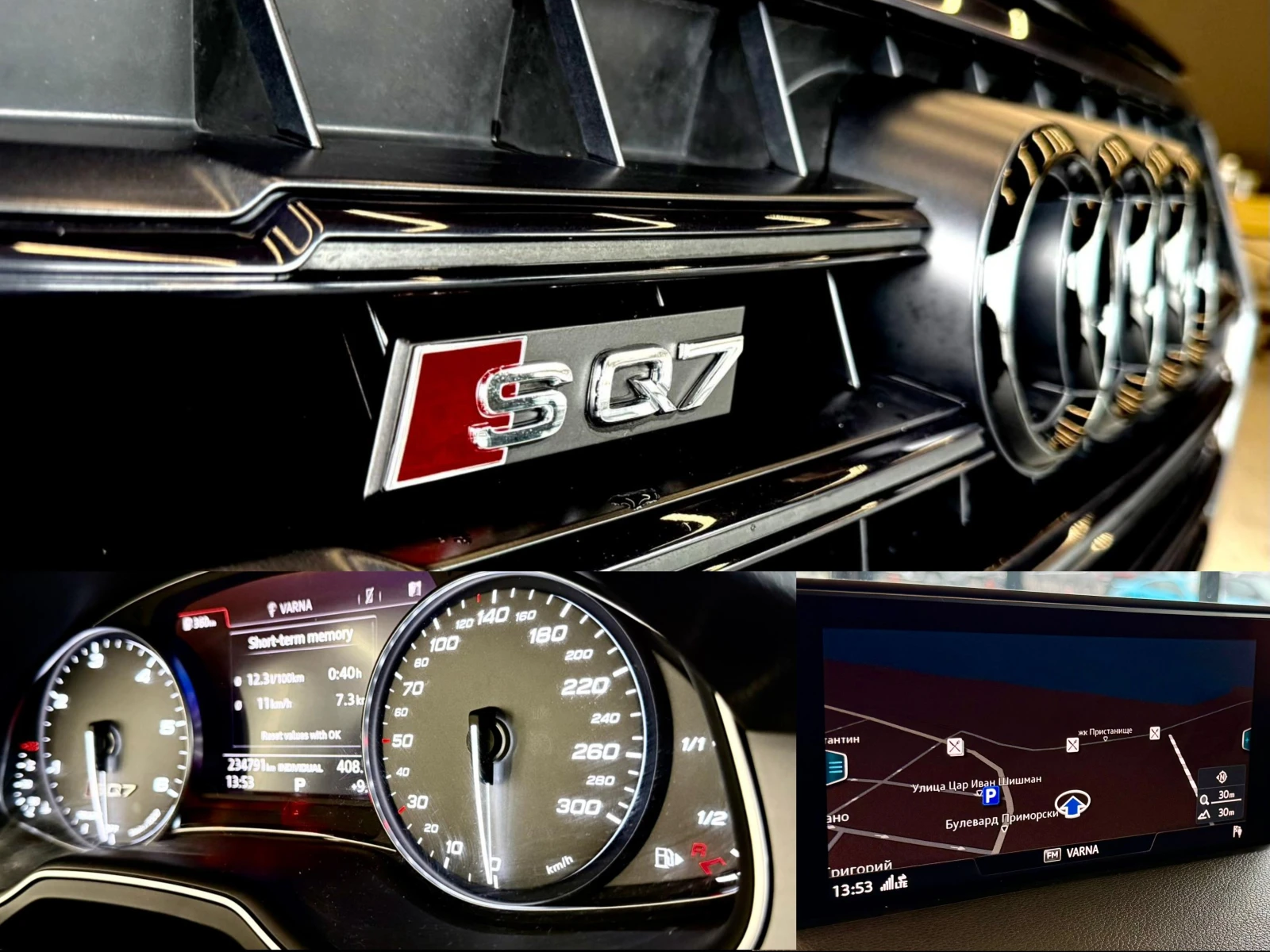 🚘 Audi SQ7 4. 0 TDI quattro Година: 2017 Двигател: 4. 0 V8 TDI дизел Мощност: 320 kW / 435 к. с. Въртящ момент: 900 Nm Скоростна кутия: 8-степенен автоматик Tiptronic Задвижване: quattro (4x4) Евростандарт: Euro 6 Купе: Луксозен SUV ⚙️ Технически характеристики Работен обем: 3956 см³ Twin-Turbo V8 дизел + електрически компресор Ускорение 0 100 км/ч: ~4. 8 сек. Максимална скорост: 250 км/ч (електронно ограничена) Комбиниран разход: ~8. 5л/100 км Адаптивно въздушно окачване Audi Drive Select режими Start / Stop система ⭐ Оборудване и екстри 🛋 Комфорт и интериор Спортен кожен салон S Електрически седалки с памет Подгряване на седалките Мултифункционален кожен спортен волан Тризонов автоматичен климатроник Ambient осветление Keyless Go Панорамен шибедах 🚘 Асистиращи системи и безопасност Адаптивен круиз контрол Асистент за поддържане на лентата Асистент за мъртва зона Парктроник преден и заден ABS / ESP / Traction Control Множество въздушни възглавници 💡 Осветление и екстериор Matrix LED фарове LED дневни светлини Алуминиеви джанти 22″ S-Line пакет Тонирани стъкла 🎶 Мултимедия и звук MMI Navigation Plus Голям централен дисплей Bluetooth / USB 📏 Размери и практичност Брой места: 5 Обем на багажника: 770 л Обем със сгънати седалки: 1800+ л ✅ Предимства на модела ✔ Един от най-мощните дизелови SUV модели ✔ Изключително ускорение и комфорт ✔ quattro задвижване за всякакви условия ✔ Високо ниво на лукс и технологии ✅ Автомобилите, предлагани от Promosale, са проверени, с доказан произход и напълно обслужени. Предлагаме пълно съдействие при регистрация в КАТ. Работим с всички застрахователни компании на преференциални цени. Внос от Германия по избор на клиента - автомобили и камиони, до 5 работни дни. Предлагаме собствен лизинг без доказване на доходи и работим със всички лизингови компании като: Алианц; Uplease; Unicredit; ОТП Лизинг; ОББ Интерлийз и други. Телефони за връзка: 0892020208 0895020203 0894908080