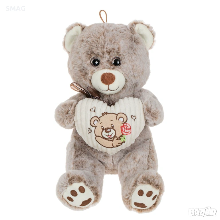 Меко плюшено сиво-бежово мече със сърце с бродерия – идеален подарък за Свети Валентин или за любим човек. Седнало и изключително меко, носи уют и радост при прегръдка. Симпатично и нежно, подходящо за подарък или декоративен акцент.