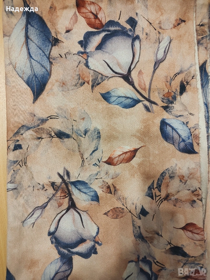 Мек и стилен кашмирен шал в бежов цвят и флорални мотиви. В перфектно състояние. Размери: 76х184см