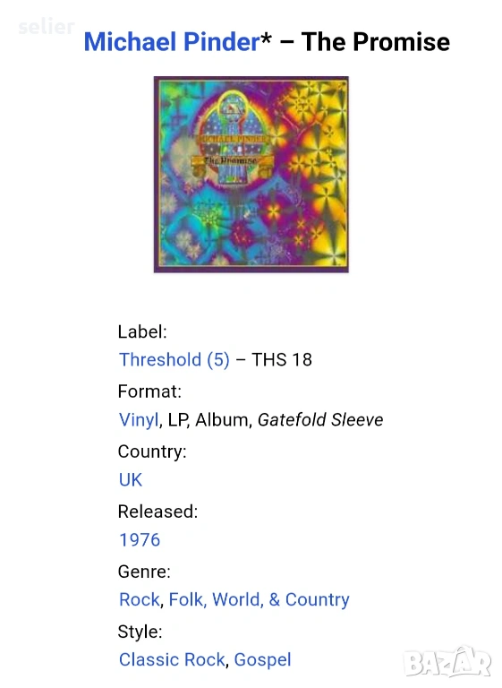 Michael Pinder ‎– The Promise Издание 🇬🇧 UK 1976г-GATEFOLD Стил:ROCK,GOSPEL Състояние на винила:ка → Обява 53370794