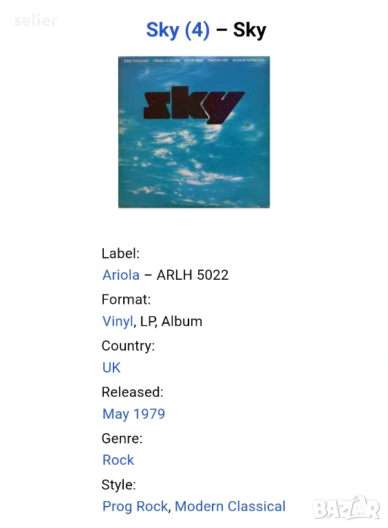 Sky ‎– Sky Издание 🇬🇧 UK 1979г Стил:Prog Rock, Modern Classical Състояние на винила:VG++ Състояни → Обява 53370820