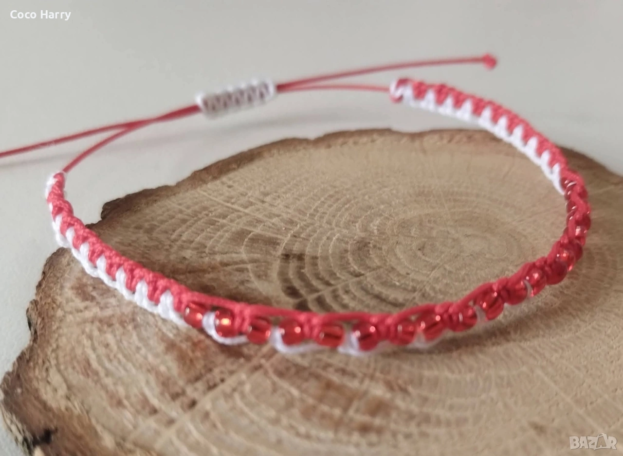 🌺Качествен червен и бял бижутерски шнур 0,8мм,регулируема обиколка