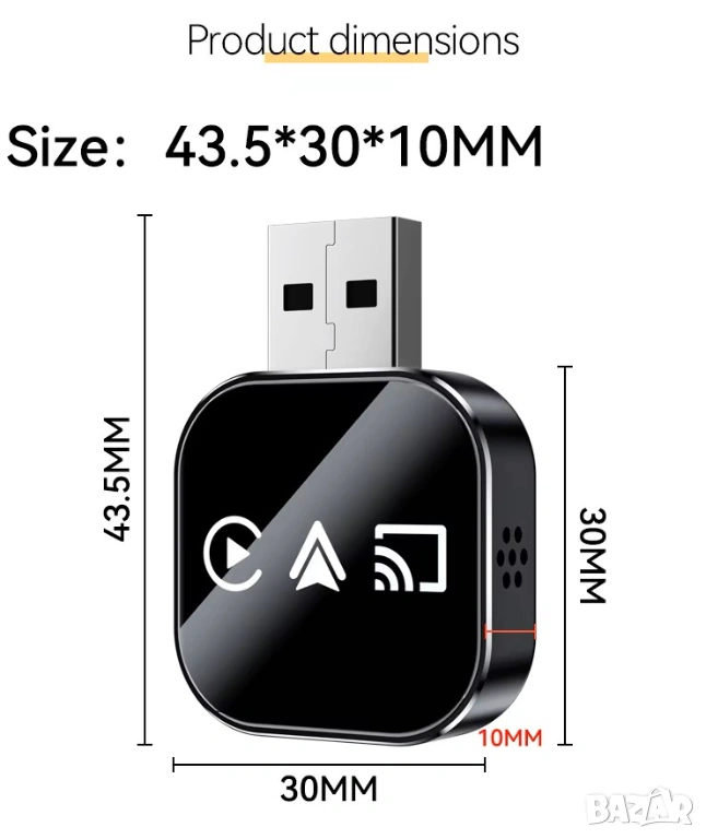 адаптер за CarPlay и Android Auto превръща кабелната връзка в безжична, осигурявайки удобство и лесен достъп до любимите ви приложения. Свързва се бързо, без нужда от допълнителна инсталация, и поддържа гласови команди, навигация, музика и обаждания.