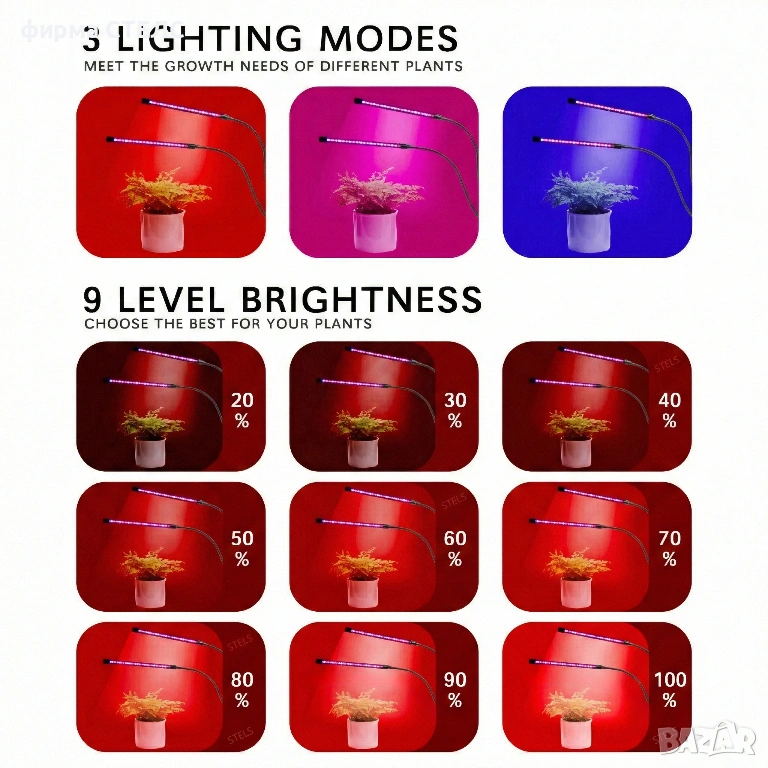 Интелигентен контрол: Вграденият таймер автоматизира цикъла на осветяване (3/9/12 часа), а димерът регулира силата на излъчваната grow led светлина според нуждите.