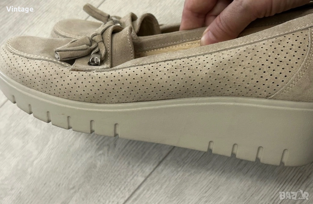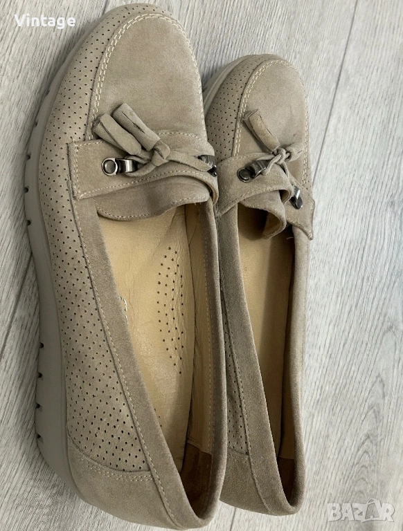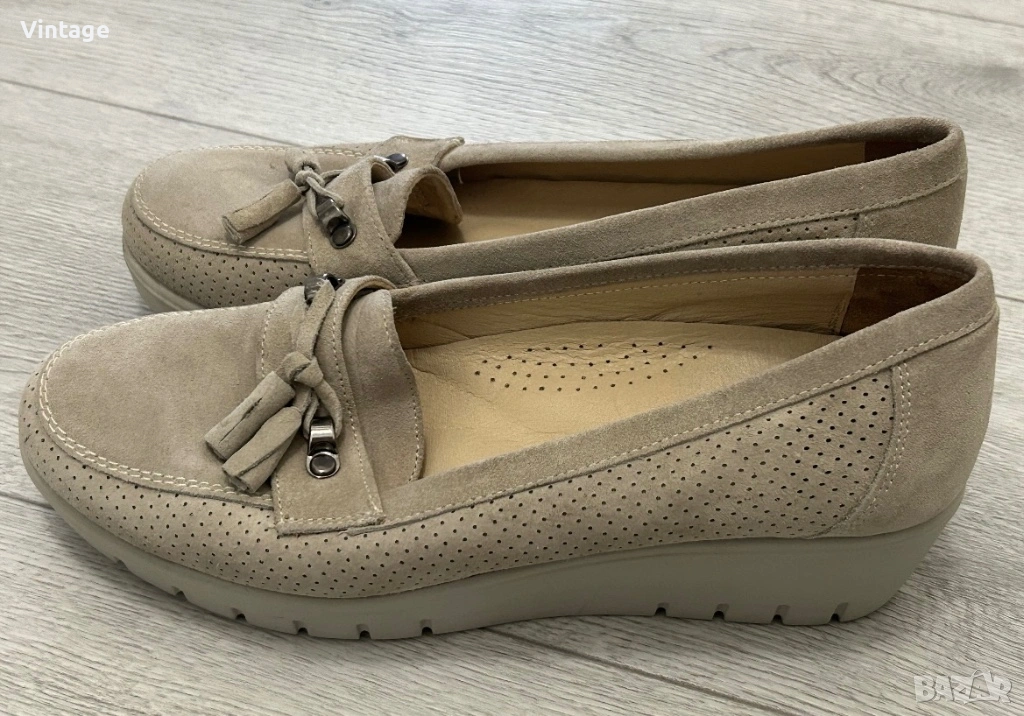 Нови обувки от естествен велур в бежов/ сив цвят. Размер 39, стелка 25,5см. Подходящи за пролет / есен, ортопедични и удобни за носене всеки ден.