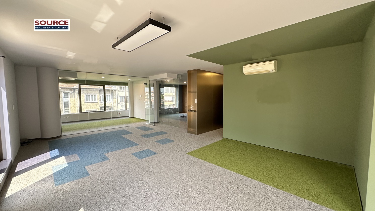 3. Системи и инсталации: Централна климатизация /отопление и охлаждане/ с индувидуални регулатори, отваряеми прозорци, компютърно окабеляване кат.6, фиброоптична свързаност с няколко интернет доставчика.