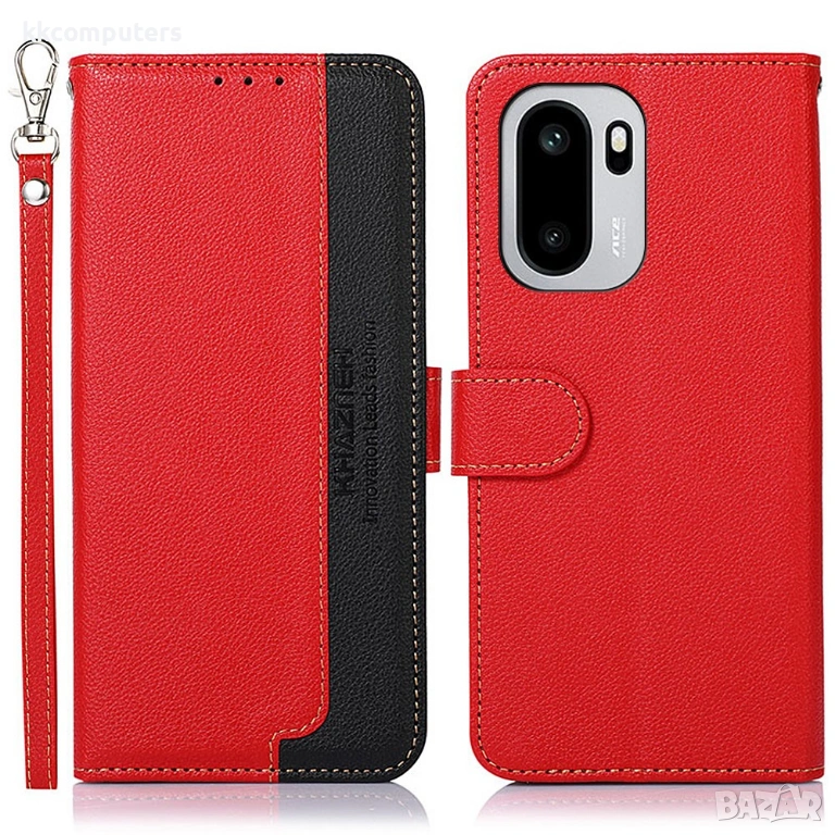 Портфейл калъфът KHAZNEH за OnePlus 15R 5G / Ace 6T 5G / Ace 6 5G е върхът на функционалността и сигурността. Изработен от PU кожа с луксозна текстура "личи" и TPU основа, той не само предпазва телефона, но и замества портфейла ви с множествено съхранение. Отличителни черти са RFID защитата на картите, вградената стойка и сменяемият ръчен ремък. Комплектът включва скрийн протектор.
