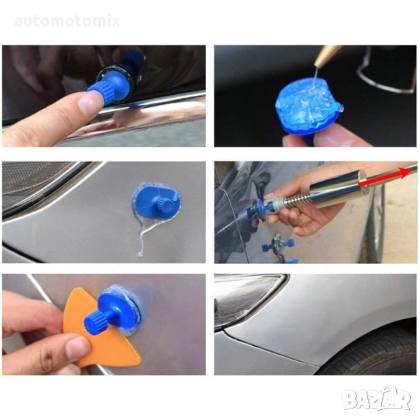 Комплектът се използва за премахване на вдлъбнатини, причинени, в резултат на леки сблъсъци, повреди при паркиране, вандализъм и дори градушка.