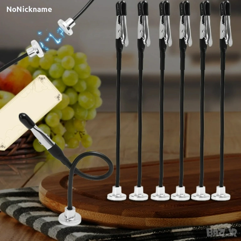 • Универсален и стилен: Изработен от издръжлива сплав + магнити, той е компактен и идеален за различни приложения, като например креативни държачи за послания, маркери за места за сватбени тържества и дисплеи за снимки