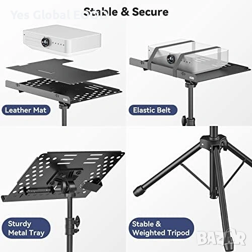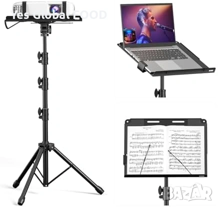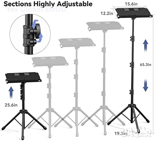 KDD стойката за проектор 4-в-1 е универсално и стабилно решение за проектори, лаптопи, таблети и ноти. Сгъваемата конструкция и здравата основа осигуряват отлична стабилност, а пружинното рамо и плъзгащият механизъм позволяват лесно позициониране. Височината се регулира от 59 до 160 см, а въртящата се на 180° глава дава максимална гъвкавост при настройка. Подходяща е за дома, офиса, класни стаи, презентации и музикални изпълнения.