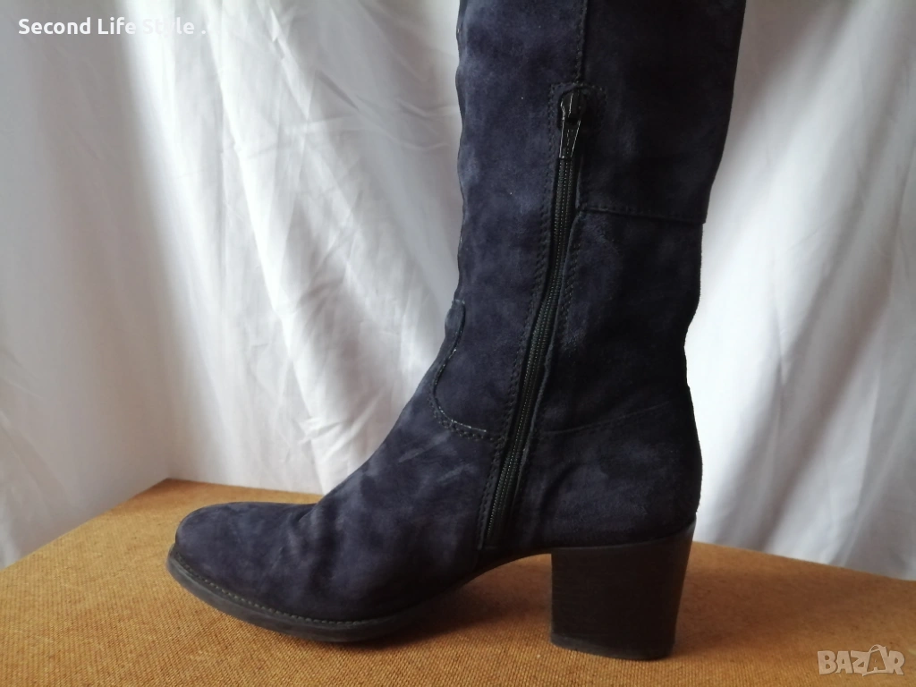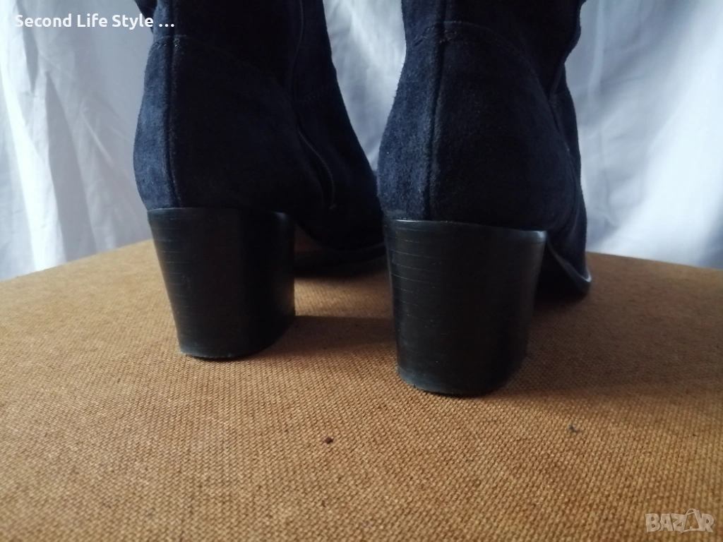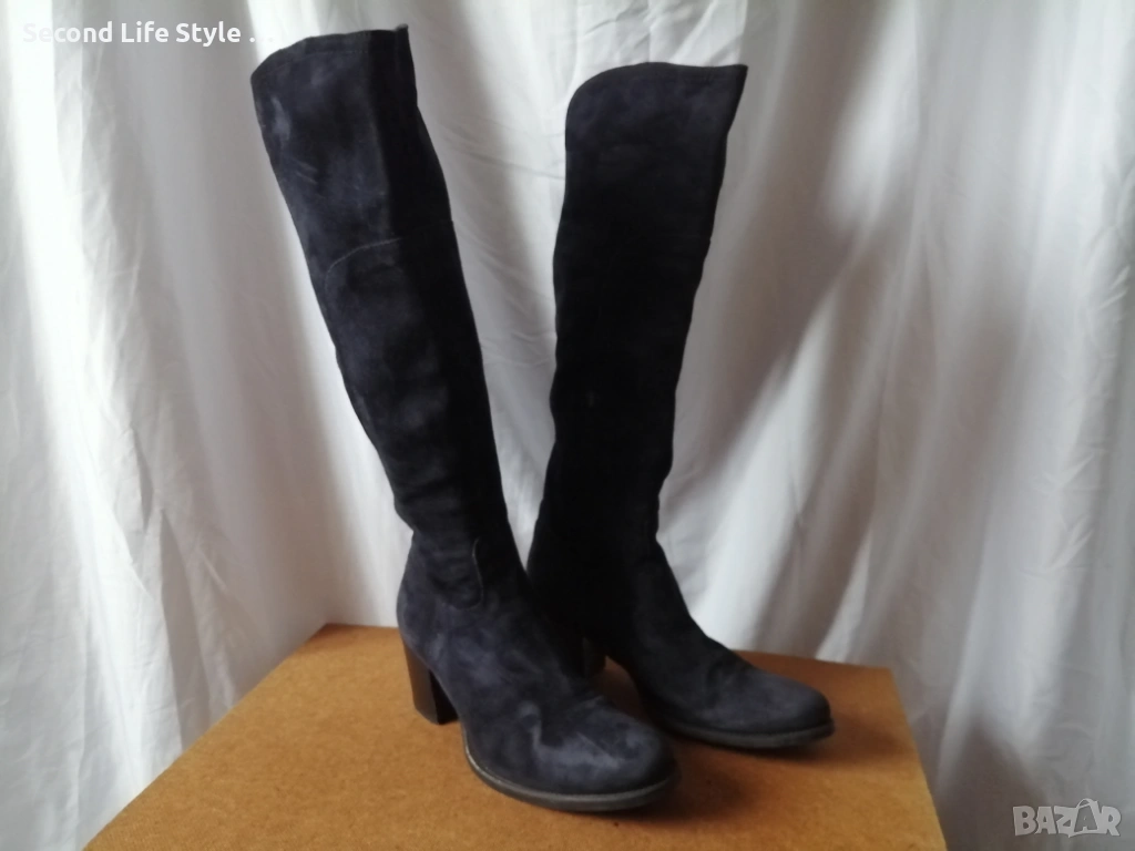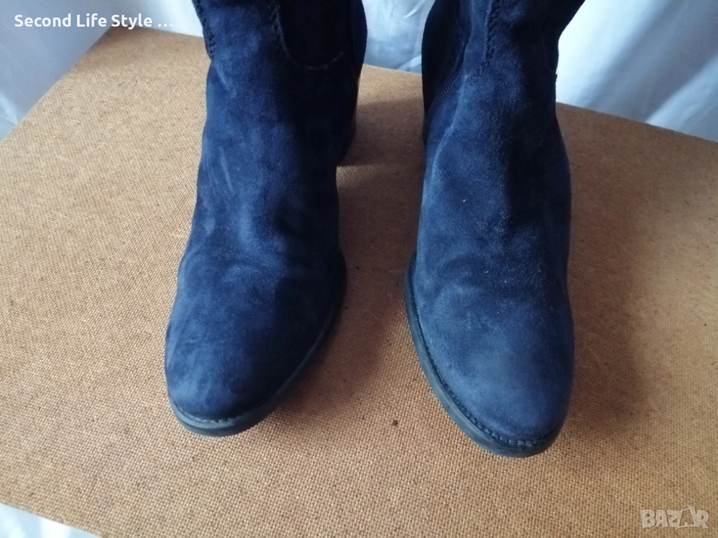 № 37 дамски ботуши естествен велур в син цвят