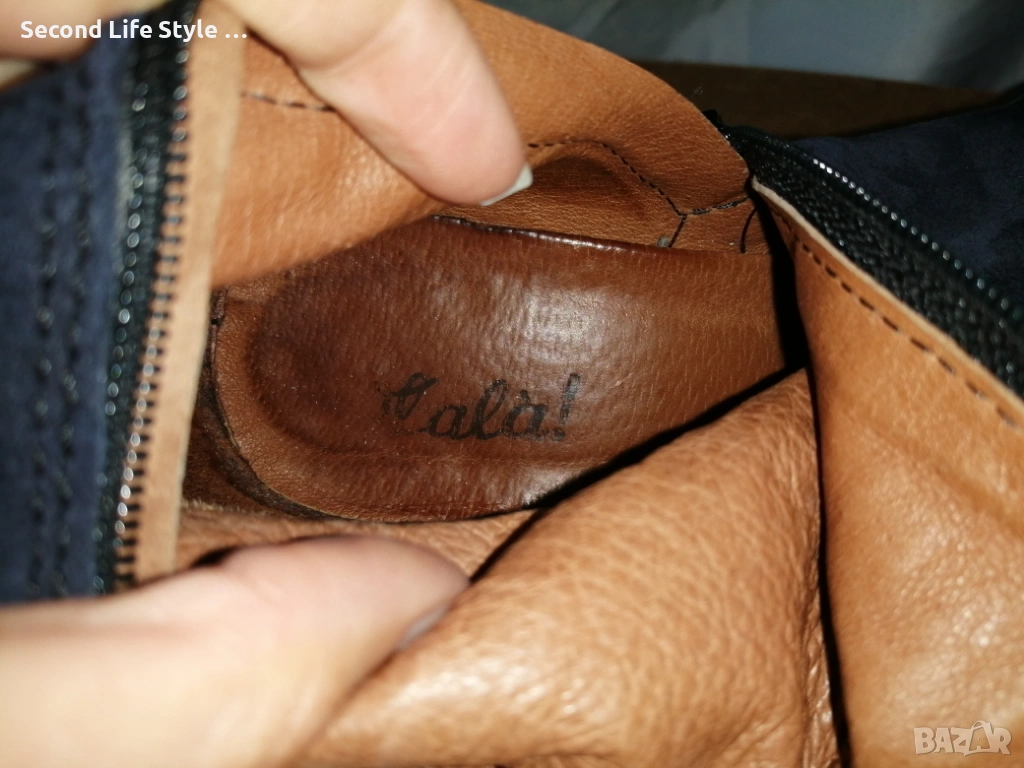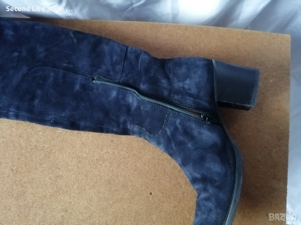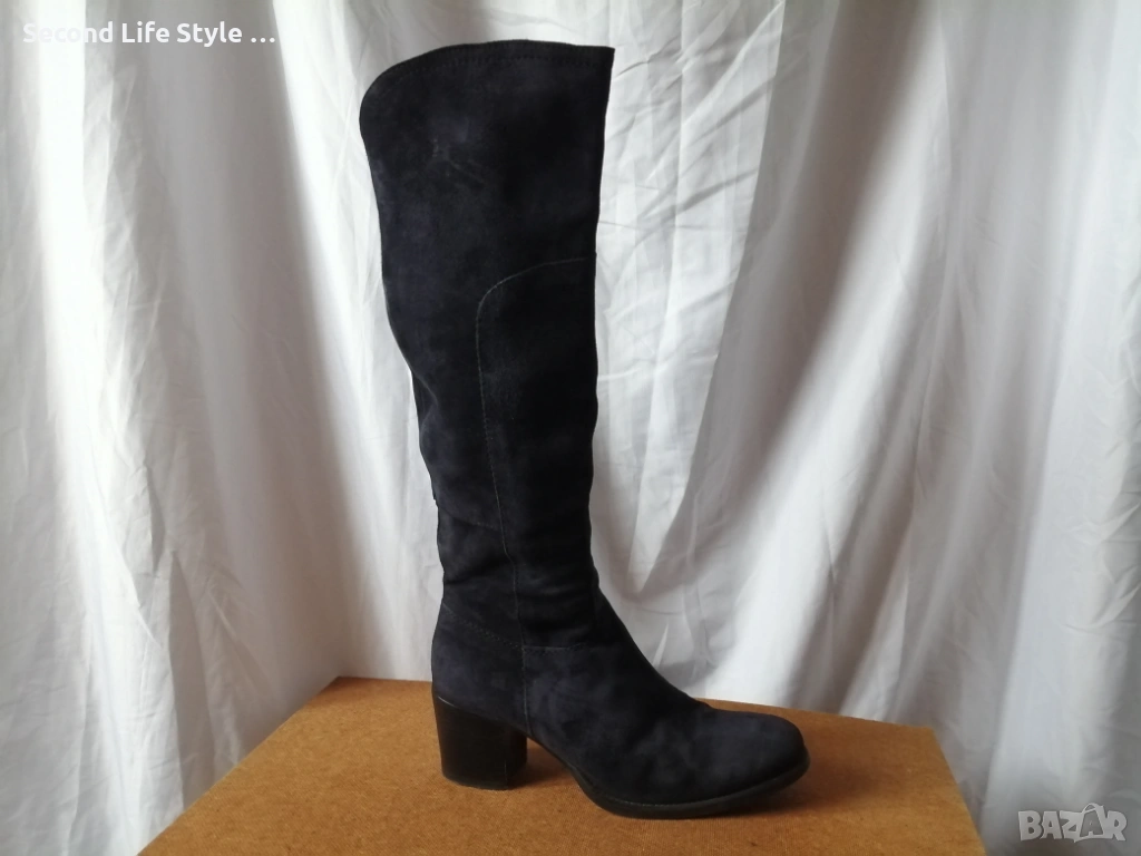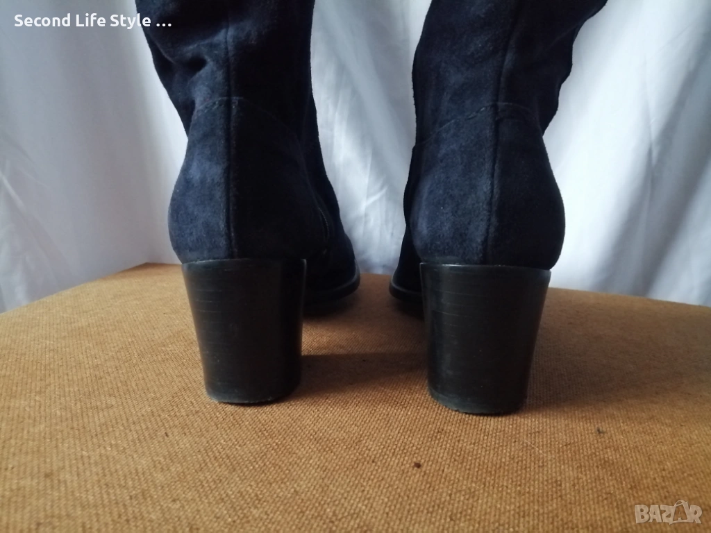 № 37 дамски ботуши естествен велур в син цвят