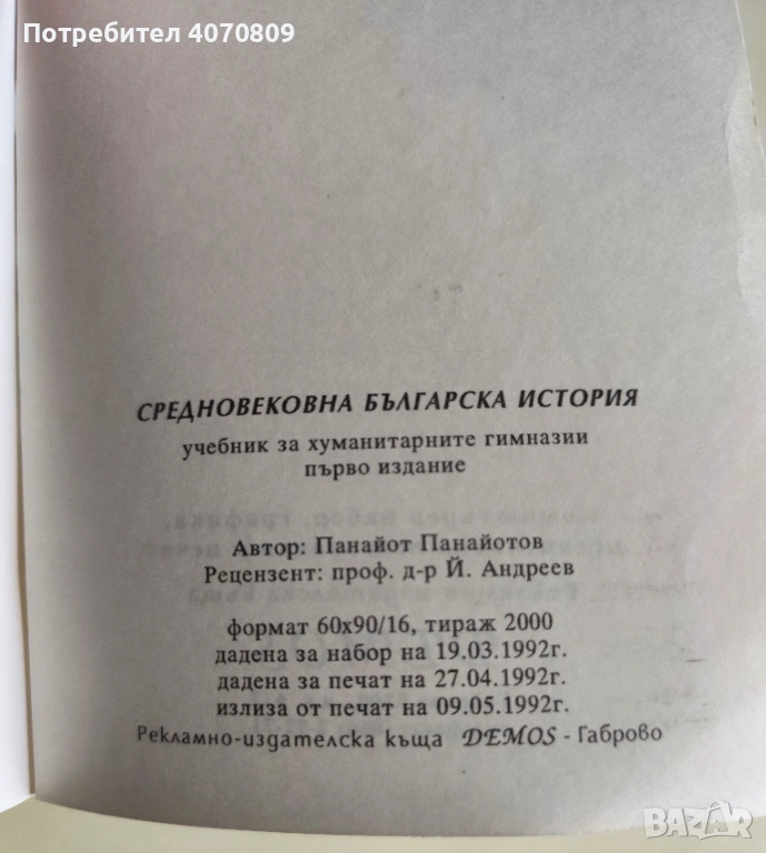 • Средновековна Българска История - Панайот Панайотов 1992г. съст. мн. доб. тираж 2000 - 8.00 евро