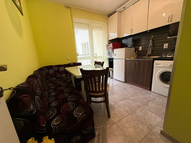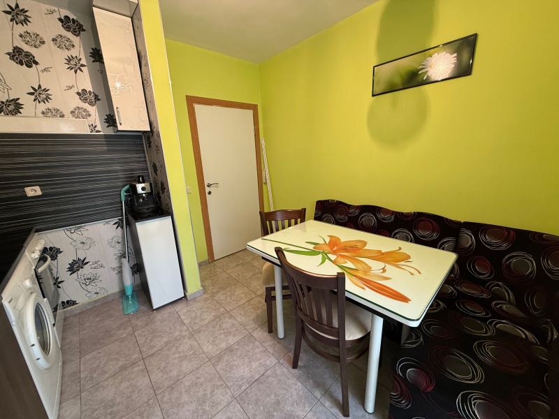- Просторна дневна с обособен кухненски бокс, оборудван с всички необходими уреди, включително микровълнова, хладилник, готварска печка, котлони и пералня.