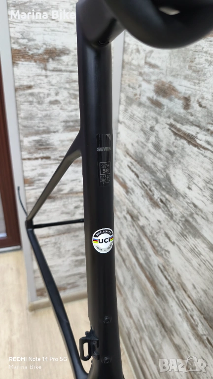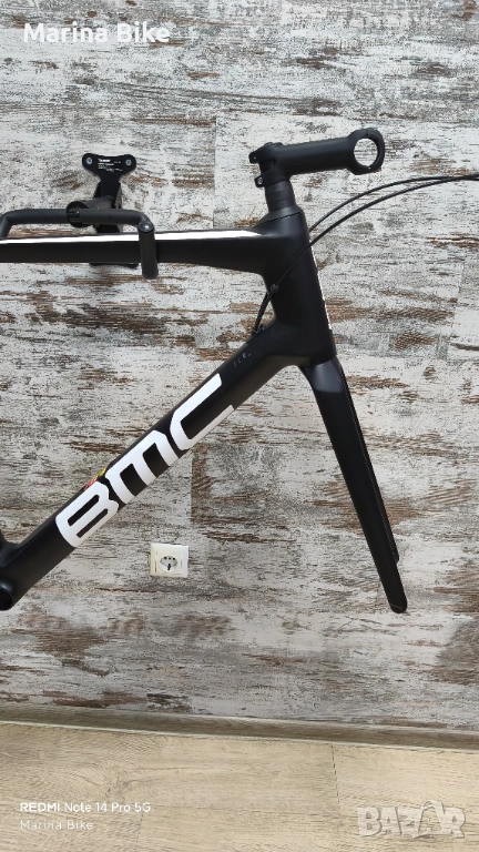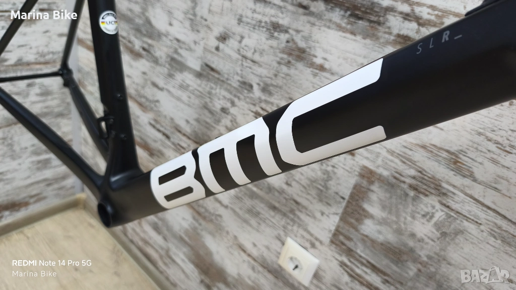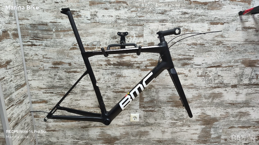 1. Карбонова ( Teammachine SLR Carbon with Aerocore ) оригинална рамка BMC Teammachine SLR Seven Disc, размер 58, модел 2023 година, с UCI лиценз, със частична интеграция на брони и маркучи, с основни параметри: