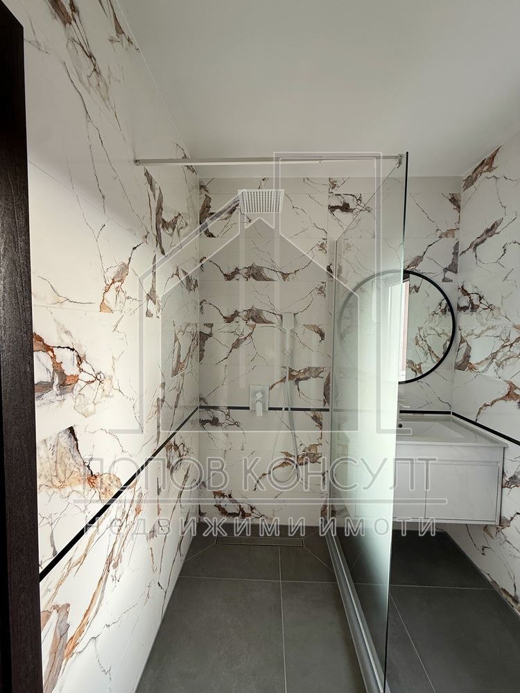 Подовите настилки са от естествен паркет и гранитогрес, вътрешното стълбище е с гранитни стъпала, монтирани са качествени интериорни врати, висок клас бои и мазилки.
