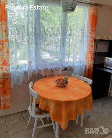 бокс с трапезария, спалня, баня с тоалетна и две тераси. Жилището се предлага