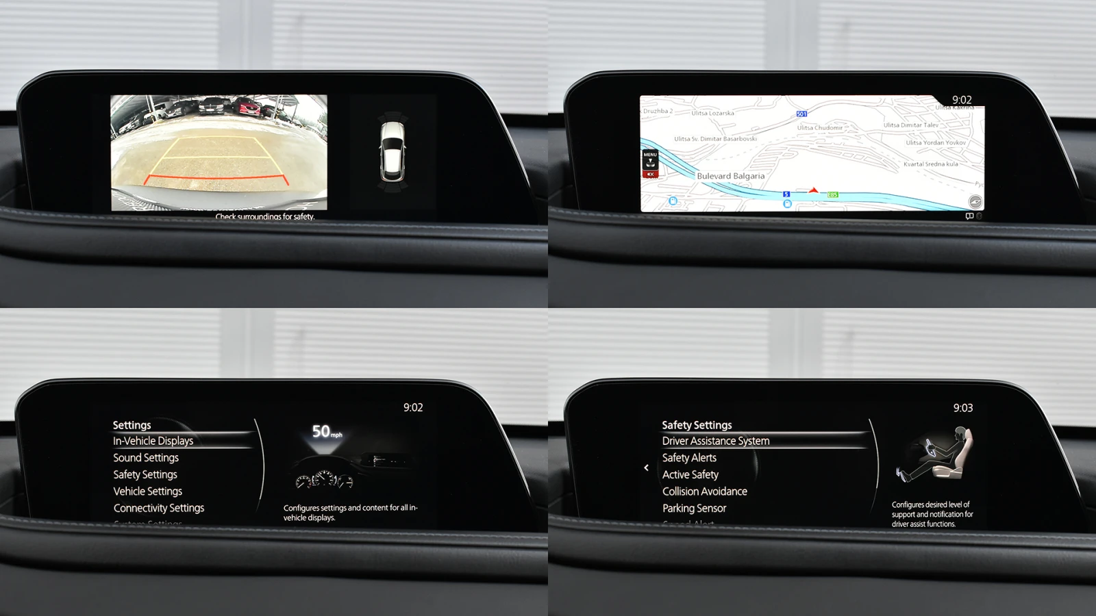 Автосвят ООД - официален представител на Opel и Mazda, предлага на Вашето внимание проверен автомобил Mazda CX-30 2. 0 Comfort PLUS SKYACTIV-G Automatic Допълнителни услуги: - лизинг; - сътрудничество при регистрация; - възможност за обратно изкупуване; - посредничество при застраховане; - посредничество при завеждане на щети при застрахователя. Цвят - Snowflake White Pearl 18 алуминиеви джанти Подгряване на предните седалки Система за размразяване на чистачките Подгряване на волана Интелигентно отключване без ключ Двузонова автоматична климатична система Самозатъмняващо се вътрешно огледало Външно ляво огледало с функция за автоматично затъмняване 4 сензорна система подпомагаща паркирането - отпред, с визуализация на дисплея Камера за движение на заден ход G-vectoring control PLUS (GVC+) - система за увеличение на стабилността при движение Радарен круиз контрол - високочестотен от 30 до 300 GHz - система за поддържане и регулиране на зададена скорост и дистанция - Mazda Adaptive Cruise Control (MRCC) Следене на сляпата зона с високочестотни радари GHz - Blind Spot Monitoring (BSM) Интелигентна помощ за спиране в градски условия - Smart City Brake Support (SCBS) с разпознаване на пешеходци Система сигнализираща за наближаващи пешеходци, велосипедисти или автомобили при движение назад -RCTA (Rear Cross Traffic Alert) Система предотвратяваща сблъсък при движение напред - SBS (Smart Brake Support) Подпомагане на движение в избраната лента с вибрация във волана и срещуположна корекция - Lane Keep Assist (LKA) Предупреждение за умора на водача - Driver Attention Assist (DAA) Контрол за управление на дългите светлини - High Beam Assist (HBC) 9 въздушни възглавници - предни, странични, завеси и за коленете на водача Система за директно следене на налягането на гумите TPMS Система за подпомагане тръгване по наклон - HHA (Hill Hold Assist) Разпознаване на пътните знаци - Traffic Sign Recognition (TSR) Централно заключване с дистанционно управление Автоматично заключване на вратите с възможност за избор на функционалност за активиране и деактивиране Сензор за светлина - автоматично включване на фаровете Сензор за дъжд -автоматично включване на чистачките E-Call System - система за връзка с телефон 112 при аварийна ситуация Проекционен дисплей върху стъклото пред погледа на водача - Head Up Display 8, 8 TFT цветен дисплей интегриран в средата на таблото на височината на погледа на водача 7 TFT цифрово табло интегрирано в уредите пред водача Интерактивен джойстик за управление на системите в централната конзола между предните седалки HMI (Human Machine Interface) Бордкомпютър - моментен и среден разход на гориво и др. Климатична система с рециркулация на въздуха и поленов филтър Електронна ръчна спирачка и функция Auto Hold за задържане на автомобила в спряло положение Безключово стартиране и спиране на двигателя с бутон на таблото Подлакътник с отваряне и място за вещи Кожен волан и кожена ръкохватка на скоростни лост Мултифункционален волан с управление на аудио системата, круиз контрол и Bluetooth Електрическо задвижване на предните и задни стъкла Падаща облегалка на задната седалка - делима в съотношение 60/40 Регулиране на седалката на водача и пасажера по височина FM/AM radio, USB (2 входа), Bluetooth DAB радио технология за приемане на цифрово излъчвани радиостанции Connect service: през приложението my Mazda предоставя информация за: местоположение на автомобила, ниво на гориво, заключване на вратите, следи налягането на гумите, пробег, прехвърляне на зададен маршрут от 