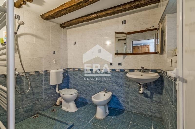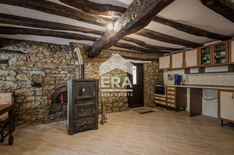 Къщата е старинна, масивна, с автентичен характер и обща застроена площ от 150 кв.м., разпределени на два етажа по 75 кв.м. Първият етаж е изграден от камък с дебелина на стените около 70 см, а вторият е тухлен, като и двата са с гредоред. Имотът разполага с два входа на първия етаж, като към момента няма вътрешна топла връзка между нивата, но съществува възможност за изграждането ?. Къщата е основно възстановена, с изцяло нов покрив, външна топлоизолация, освежена фасада и двуслойна алуминиева дограма. Изградена е септична яма, а пространството пред къщата е оформено с плочник.