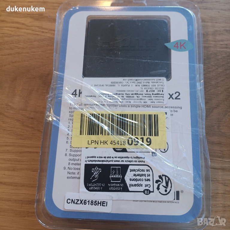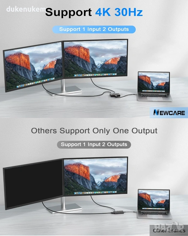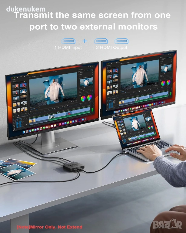 HDMI сплитер 1 вход/2 изхода – 4K дублиране на картина към два монитора едновременно