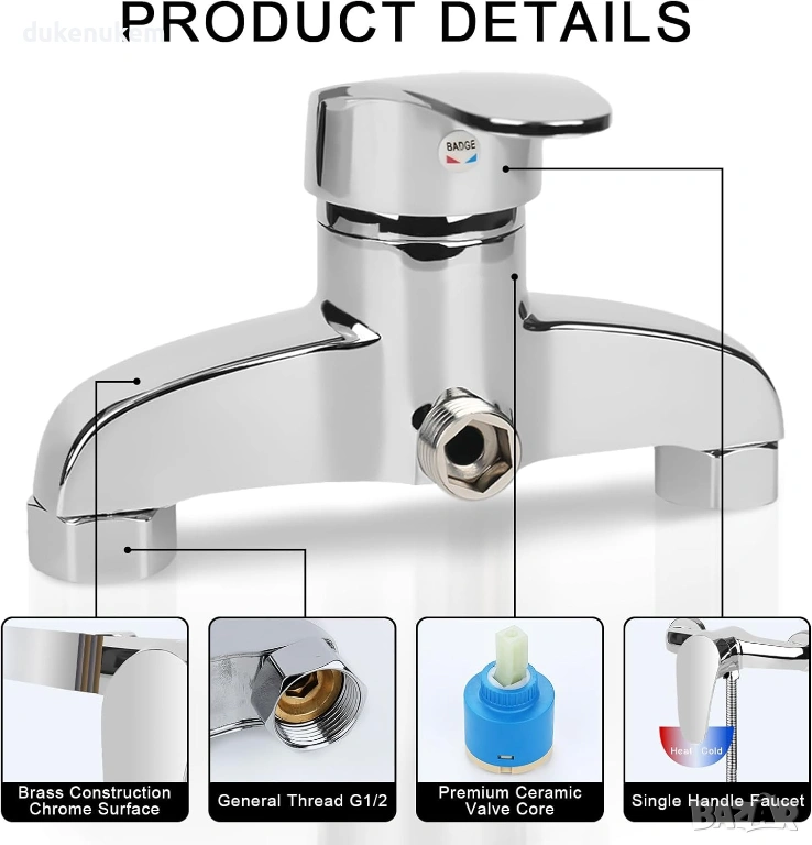 Забележка: Душ слушалка, държач и маркуч не са включени