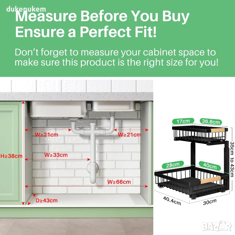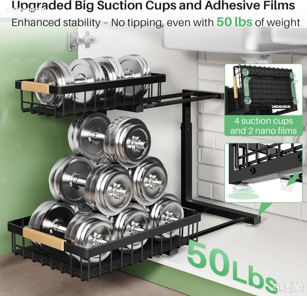2 броя Двуетажен органайзер за под мивка – изтеглящ, метален, без пробиване