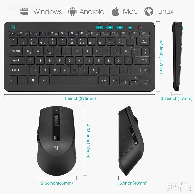 Компактен и лек безжичен комплект клавиатура + мишка с надеждна 2.4G връзка и един USB приемник. Идеален за работа у дома, офис, пътуване и Smart TV.