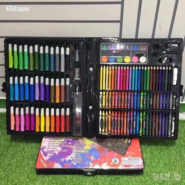 Комплект за рисуване – 150 части Богат и практичен комплект за рисуване, подходящ за деца и възрастни, начинаещи и любители на изобразителното изкуство. Съдържа всичко необходимо за творчество, рисуване и оцветяване у дома, в училище или по време на път. Комплектът е идеален подарък за малки и големи творци, като развива въображението, фината моторика и креативността. Предимства: 150 разнообразни части в един комплект Подходящ за рисуване, оцветяване и скициране Идеален за деца и възрастни Подходящ за подарък Удобен за съхранение и пренасяне Доставка с Еконт с опция преглед и тест до 3 работни дни.