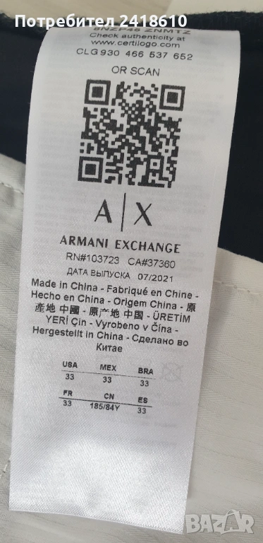 Armani Exchange Slim Fit Mens Size 33 НОВО! ОРИГИНАЛ! Мъжки Спортно - Елегантен Панталон