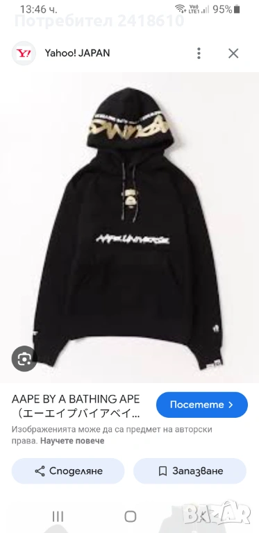 Bape AAPE By A Bathing Ape Cotton Hoodie Mens Size M ОРИГИНАЛ! Мъжка Качулка.