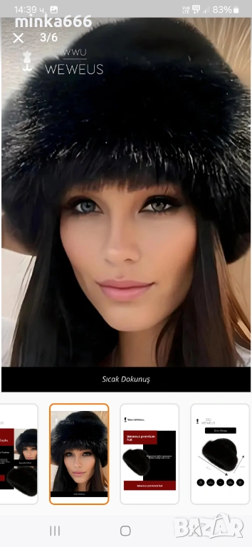 Дамска шапка с естествен косъм. → Обява 53373565