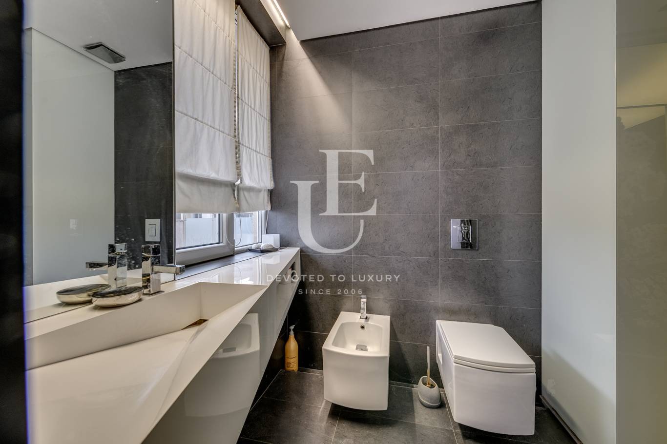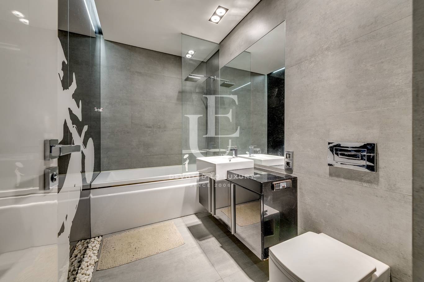 Апартаментът е с обща площ от 420 кв.м. и се намира на шести последен жилищен етаж с изложение изток-юг, което осигурява естествена светлина през целия ден. Интериорът е реализиран по дизайнерски проект, с фокус върху комфорта и функционалността. Разпределението на имота включва просторна дневна с трапезария и кухня, която може да се отдели с плъзгаща японска стена, родителска спалня с баня и бодуар, две допълнителни спални с бани, кабинет, сервизно помещение и тоалетна за гости.