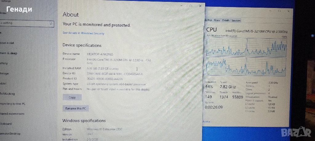 Лаптопа е минал пълна профилактика, сложено НОВО SSD 32GB ADATA 2.5" / 8GB RAM DDR3 / Intel i5-3210M up to 3.0 Ghz