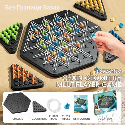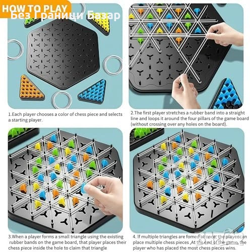 Стратегическа настолна игра с гумички: оформяте триъгълници и „завземате“ територии на дъската