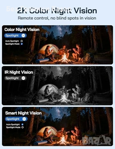 Цветно нощно виждане с IR и бели LED светлини (прожекторът се активира ръчно)