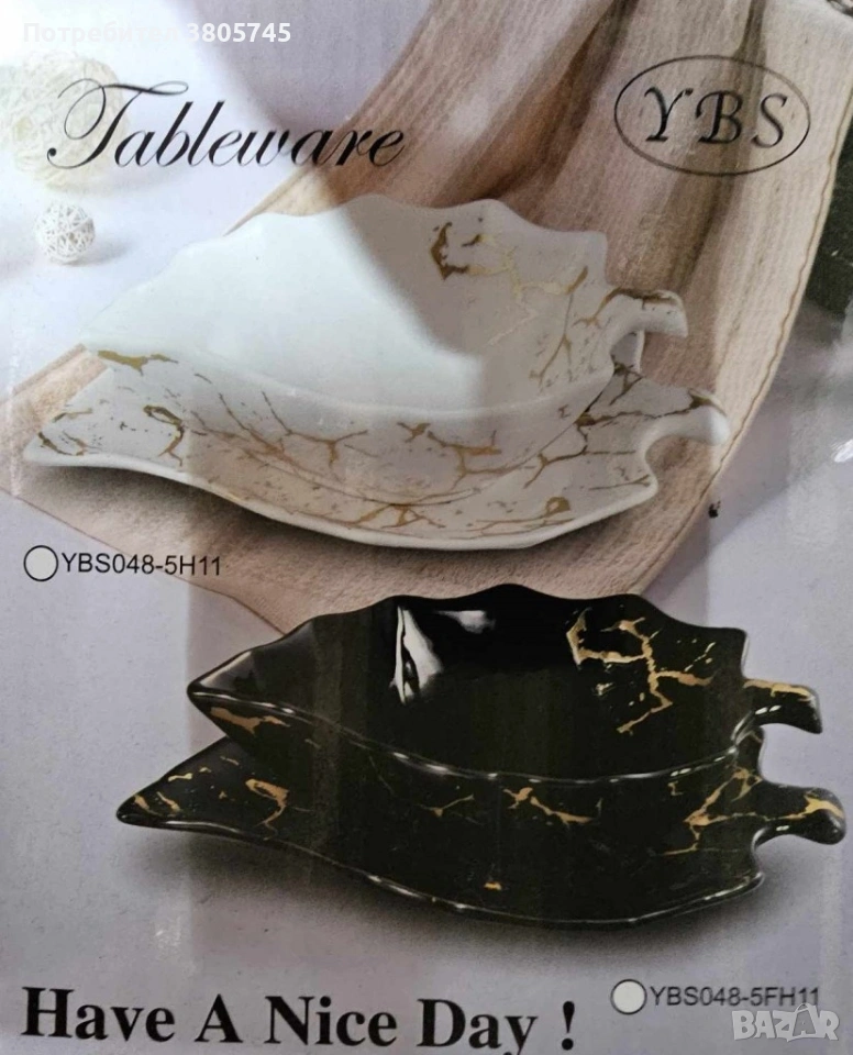 Сервиз керамична чиния и купичка във формата на листо → Обява 53374042