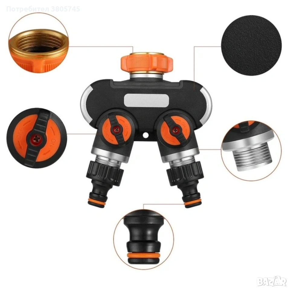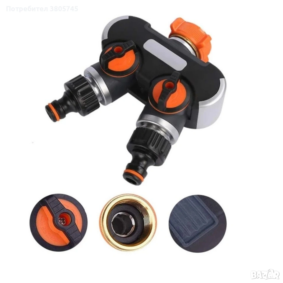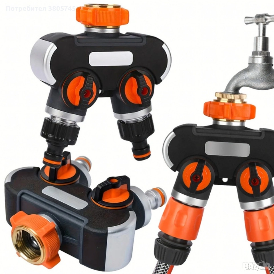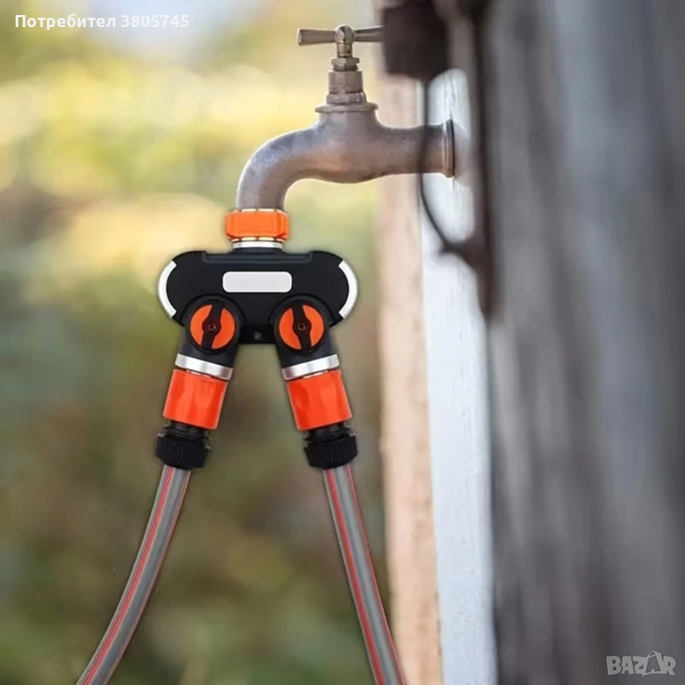 Двупосочен разпределител за градински кран 2-в-1: Сплитер за маркуч с независими вентили (3/4" и 1") → Обява 53374109