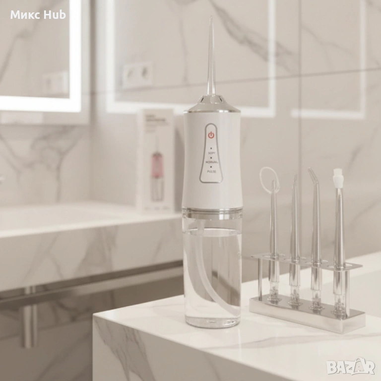 Портативен зъбен душ с 3 режима на действие и мощна водна струя / Цвят: Бял , снимка 1 - Други - 53374112 Портативен зъбен душ с 3 режима на действие и мощна водна струя / Цвят: Бял , снимка 2 - Други - 53374112 Портативен зъбен душ с 3 режима на действие и мощна водна струя / Цвят: Бял , снимка 3 - Други - 53374112 1/3