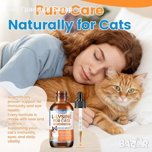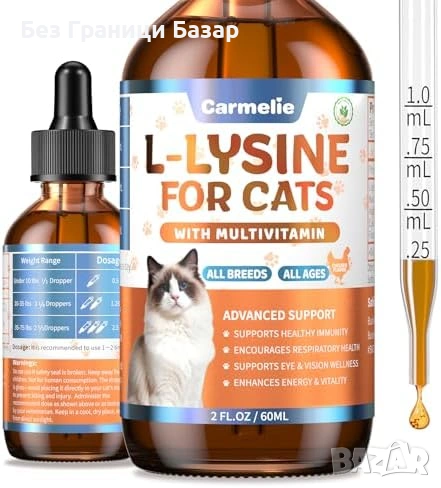 Течна добавка с L-лизин за котки и котенца – подкрепа за имунната система и дихателния комфорт