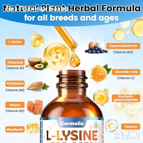 Нова Добавка L-лизин за котки + таурин витамини C D3 B, 60ml вкус пиле