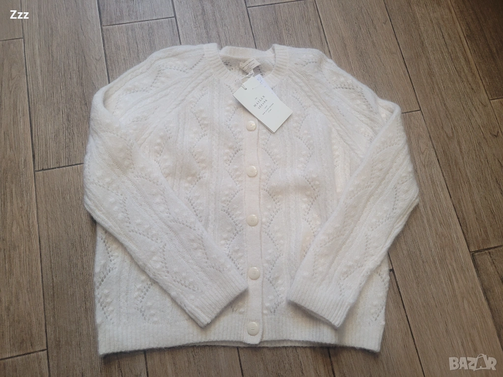 1. Жилетка в цвят бял/ ейвъри, размер М, състав: мохер 34%; 34% вълна; 27% полиамид; 5 % еластан