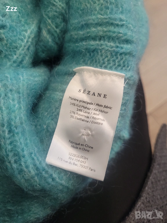 2. Жилетка в цвят минта, размер ХЛ, състав: мохер 34%; 34% вълна; 27% полиамид; 5 % еластан.